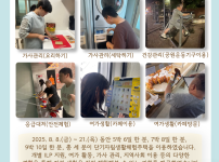 2025. 7. 5.(토) ~ 7. 25.(금) 동안 8박 9일 두 분, 20박 21일 한 분, 총 세 분이 단기자립생활체험주택을 이용하였습니다. 개별ILP 지원, 여가활동, 문화체험, …