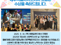 2025. 9. 18.(목) 메종글래드에서 진행된 2025년 제26회 사회복지사의 날 기념식에서돌봄지원팀 김정아 팀장님께서 제주특별자치도지사 표창장을 수상하였습니다.사회복지 증진을 위해 항상 열심히 노력하…